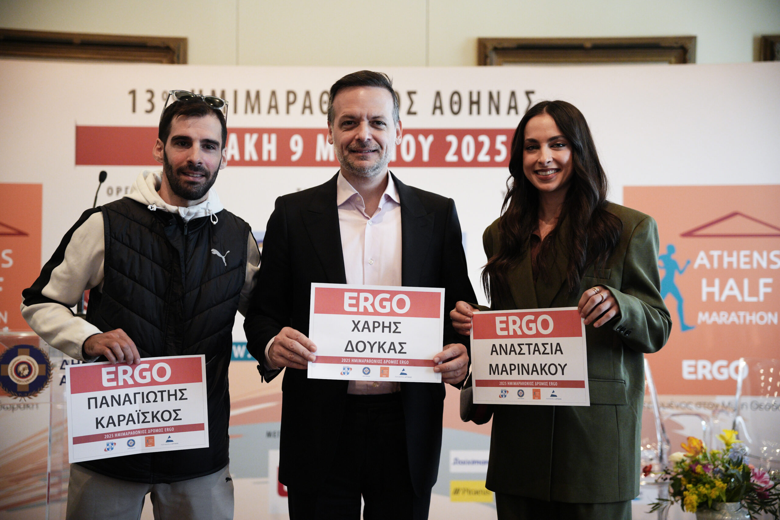 Στη συνέντευξη Τύπου παρευρέθηκαν δύο κορυφαίοι Έλληνες αθλητές και πρεσβευτές του Ημιμαραθωνίου, η Αναστασία Μαρινάκου και ο Παναγιώτης Καραΐσκος.