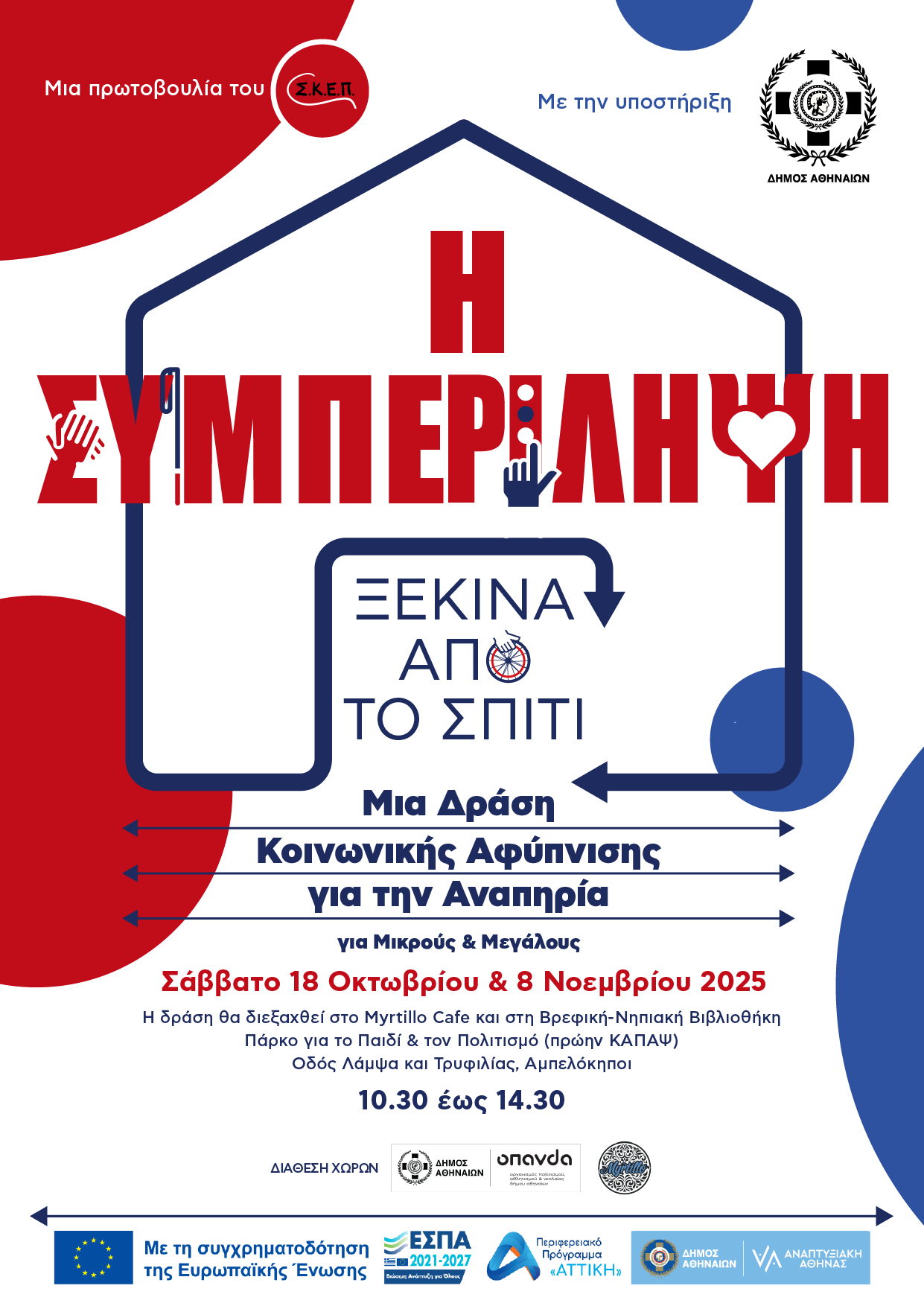 Στις 18/10/25 και στις 8/11/25 πραγματοποιήθηκε το πιλοτικό εκπαιδευτικό πρόγραμμα “Η Συμπερίληψη ξεκινά από το σπίτι” με τη συνεργασία του Συνδέσμου Κοινωνικής Ευθύνης για Παιδιά και Νέους (Σ.Κ.Ε.Π.) Το Πρόγραμμα είχε στόχο την κοινωνική αφύπνιση για την αναπηρία και την ανάπτυξη συμπεριληπτικής νοοτροπίας στο οικογενειακό περιβάλλον. Πραγματοποιήθηκε στη Νηπιακή – Βρεφική Βιβλιοθήκη και στο Myrtillo Cafe και περιλάμβανε τη χρήση ενός διαδραστικού Τετραδίου Κοινωνικής Αφύπνισης για την Αναπηρία, το οποίο έχει σχεδιαστεί ειδικά από τον ΣΚΕΠ για τους γονείς και τα παιδιά που συμμετείχαν στο Εκπαιδευτικό Πρόγραμμα «Η Συμπερίληψη ξεκινά από το Σπίτι».