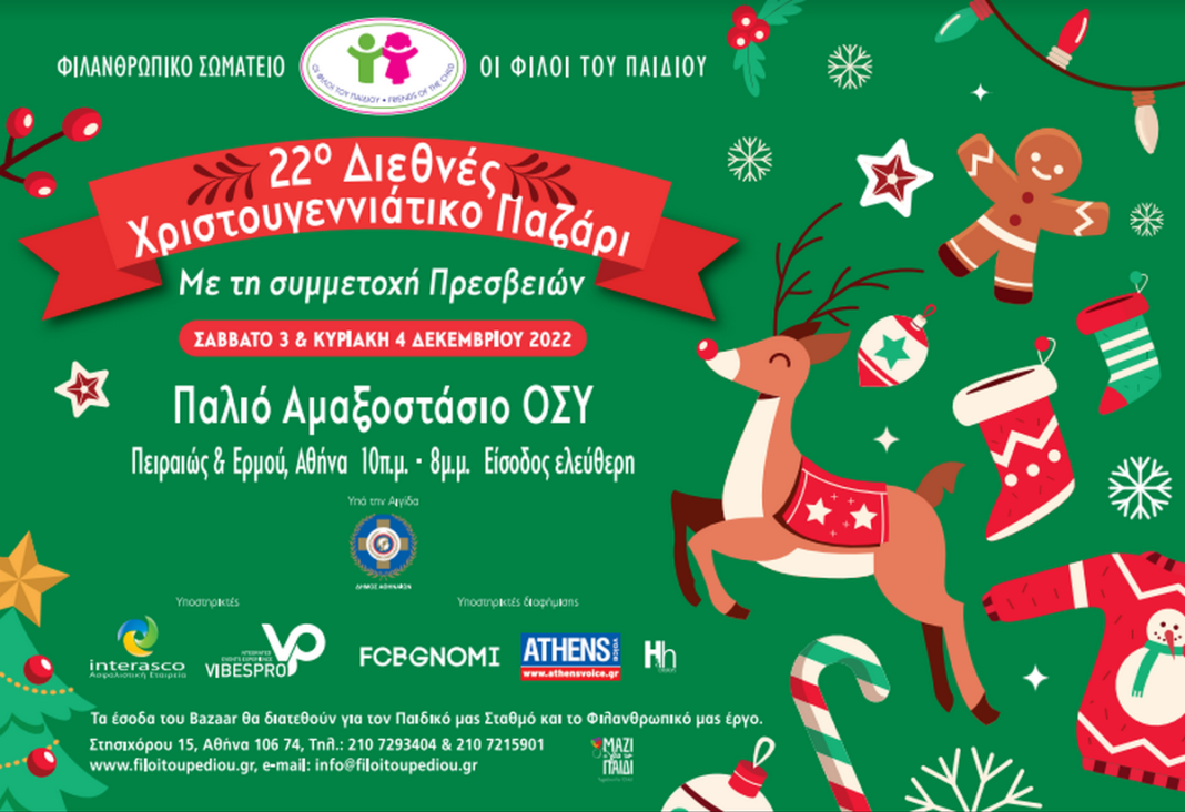 Σε ένα υπέροχο Χριστουγεννιάτικο περιβάλλον, οι επισκέπτες μπορούν να αποκτήσουν από σπιτικά γλυκά και χριστουγεννιάτικα στολίδια μέχρι βιβλία και παιχνίδια, στηρίζοντας έτσι έμπρακτα το πολύτιμο έργο του Σωματείου, αφού σημαντικό μέρος των οικονομικών πόρων του προέρχονται από τα έσοδα αυτά.