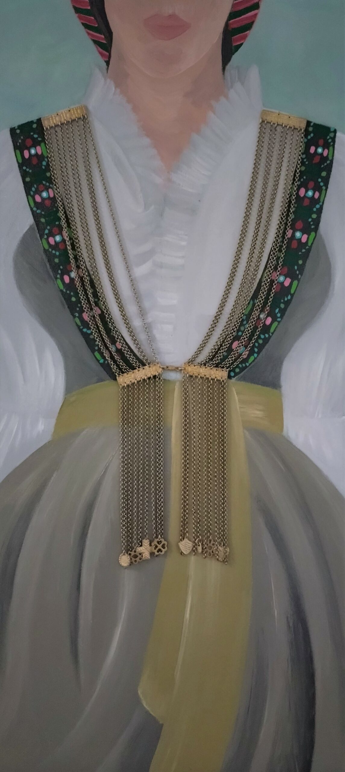 Με αφορμή τη γυναικεία φορεσιά της Πάρου, η Υπαπαντή Ρούσσου, η έρευνα της οποίας στάθηκε πολύτιμη για το παρόν εγχείρημα και τον εικαστικό διάλογο που αυτό σηματοδοτεί, αναφέρει μεταξύ άλλων ότι η παριανή φορεσιά των αρχών του 20ου αιώνα «είναι έντονα επηρεασμένη από την μόδα των χωρών της δυτικής Ευρώπης, αφού η θάλασσα έφερνε τους νησιώτες σε επαφή με τη Ανατολή και τη Δύση. Η σύνδεση ιδιαίτερα με τη Δυτική Ευρώπη χρονολογείται ήδη από τον 13ο μ.Χ. αιώνα, όπως φαίνεται και από τις ιταλικές επιρροές στη μεσαιωνική φορεσιά του νησιού», ενώ τα εσωτερικά της κομμάτια παρουσιάζουν σημαντικές ομοιότητες με αυτά του 16ου-19ου αιώνα». Η πουκαμίσα, «συνήθως αμάνικη -βασικό στοιχείο της καθημερινής αλλά και της γιορτινής φορεσιάς που φοριόταν κατάσαρκα σαν ένα σημερινό φόρεμα-«, ο μπούστος, «είδος στηθόδεσμου που φοριόταν πάνω από την πουκαμίσα», το πορτελάτο, «το λευκό βρακί της εποχής που είχε μπατζάκια και πολλές φορές έφτανε ως τα γόνατα, όπου ενωνόταν με τις κάλτσες και δενόταν με κορδονάκια-φακαρόλες στη μέση αλλά και στα μπατζάκια», το λευκό γιορτινό ή καθημερινό σκουρόχρωμο μισοφόρι, μια «εσωτερική φούστα, μακριά ως τις γάμπες και φοριόταν πάνω από την πουκαμίσα», η λευκή καμιζόρα, «το ένδυμα του ύπνου, νυχτικό, με μανίκια και έφθανε ως τη μέση, με μικρές πιέττες και πολλές δαντέλλες».