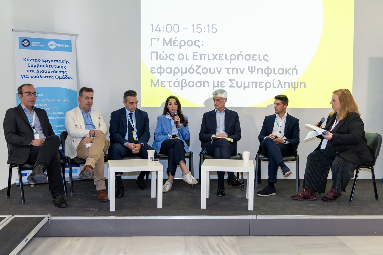 Η ημερίδα, έθεσε στο επίκεντρο τη σύνδεση της τεχνολογικής εξέλιξης με την κοινωνική δικαιοσύνη. Σύμβουλοι απασχόλησης, κοινωνικοί φορείς, στελέχη ανθρώπινου δυναμικού, εκπρόσωποι επιχειρήσεων και άτομα που ανήκουν σε ευάλωτες κοινωνικές ομάδες συμμετείχαν σε πάνελ, παρουσιάσεις και εργαστήρια, με κοινό στόχο μια δίκαιη και ανθρώπινη ψηφιακή μετάβαση.