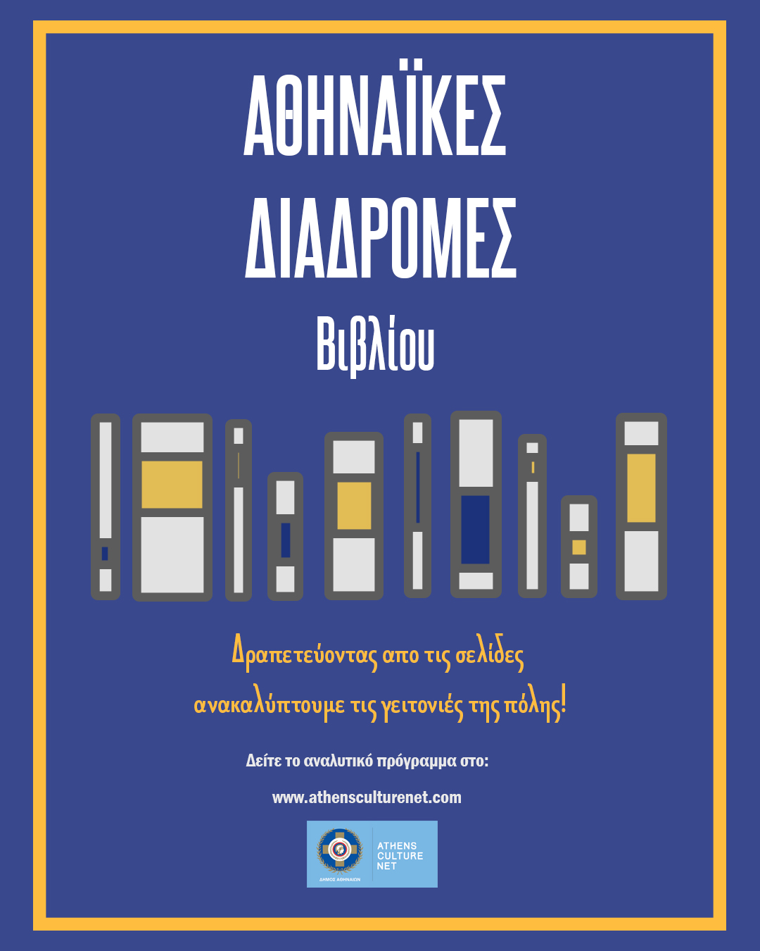 Οι «Αθηναϊκές Διαδρομές Βιβλίου» αποτελούν μία πρωτοβουλία του Δήμου Αθηναίων μέσω του Athens Culture Net, που υλοποιείται σε συνεργασία με εκδοτικούς οίκους, συγγραφείς, καλλιτέχνες και χώρους πολιτισμού της Αθήνας.