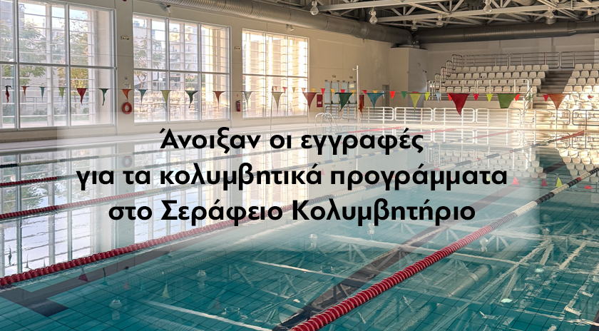 Ο Οργανισμός Πολιτισμού, Αθλητισμού και Νεολαίας Δήμου Αθηναίων (ΟΠΑΝΔΑ) ενημερώνει τους δημότες ότι ξεκίνησαν οι εγγραφές για τα κολυμβητικά προγράμματα στο Σεράφειο Κολυμβητήριο, μία σύγχρονη και υποδειγματική εγκατάσταση με απόλυτο σεβασμό στις ανάγκες του δημότη.